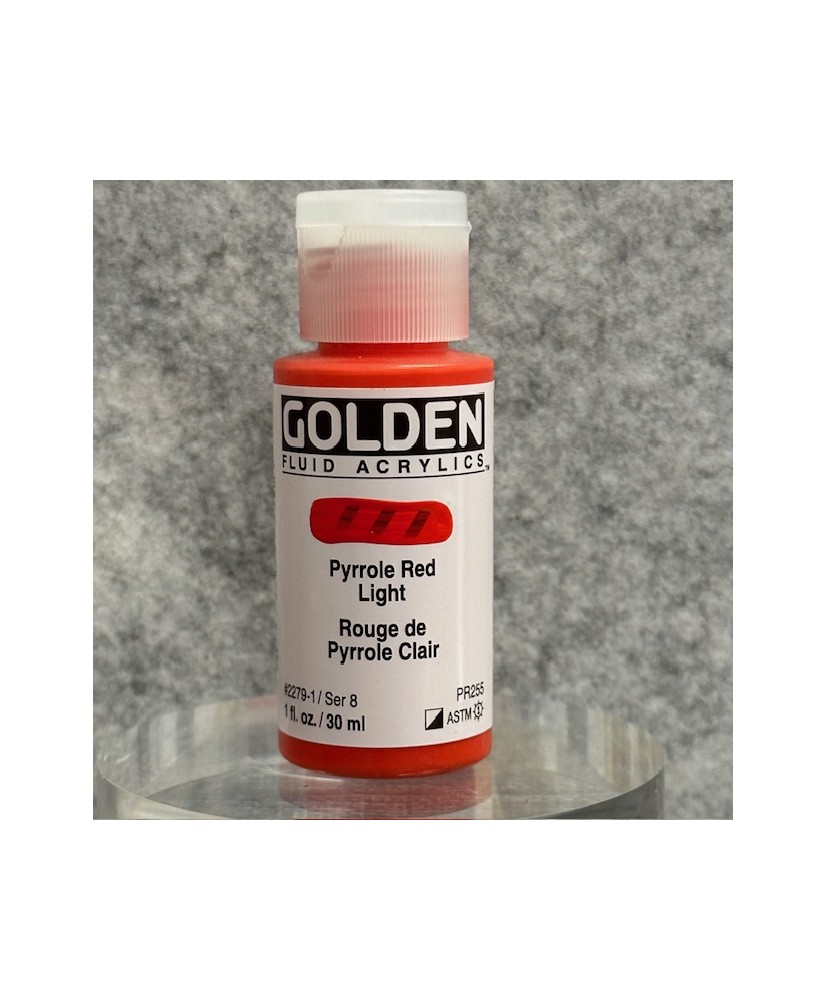 Fluids are created by loading an acrylic polymer binder with concentrated levels of quality pigments for a wide selection of permanent and lightfast colors. No fillers or extenders are added to achieve the desired consistency, nor is the fluid quality achieved with additional water. GOLDEN Fluid Acrylics have the same pigment load as the Heavy Body Acrylics, but in a viscosity similar to heavy cream. Fluids allow for smooth flowing applications while retaining color intensity, tinting strength, film integrity, and adhesion.